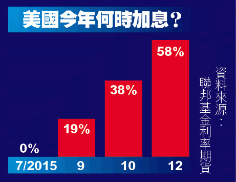 美國聯儲局主席耶倫頻打開口牌,今年加息勢在必行,根據聯邦基金利率期貨走勢,9月、10月及12月加息的機會率,分別為19%、38%及58%。息魔重臨下,美元強勢足令商品市場風起雲湧,金價近期再創五年新低,大媽也難抵跌勢,究竟幾時先跌夠?投資者關心的外匯以至本港股市及樓市,又會否有翻天覆地影響呢?今期「投資導航」同你逐格睇。