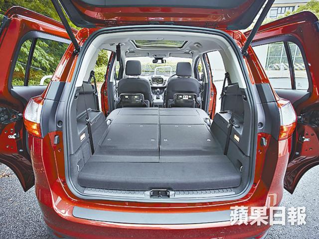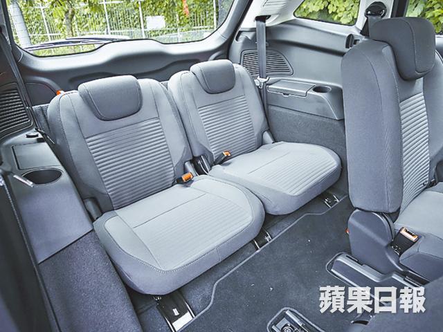 香港車主對平價七人車的渴求路人皆見,相信Ford也一直希望進擊這個市場,所以三年前回歸香港的頭炮也是MPV S-MAX。小試牛刀,反應不似預期,代理踏出進擊的第二步,首次引入門檻更低的Grand C-MAX。剛剛小轉款的Grand C-MAX,車身長闊高為4,519×1,828×1,662mm,軸距長2,788mm,體積不算大,定位是中型MPV,內設2+3+2的七座佈局,第三排雖然是常見從尾箱偷出來的+2座位,但腿部伸展度及乘坐感不會令人覺得太鬼祟。其實廠方稱座椅是4+3設計,皆因中排座椅的中間席尺碼細小,摺合後更可收藏於右邊的座椅之內,從而為車廂騰出一條小走廊,方便乘客走進第三排。事實上,不少五人家庭都喜用三排座位,希望可以坐得鬆動一點,真正坐滿七人的時候少之又少,能夠長時間隱藏中排中座達至進出上落更便利,考量確實花了心思,因為其他有走廊的MPV大部份是2+2+3佈局,第三排較為逼狹。