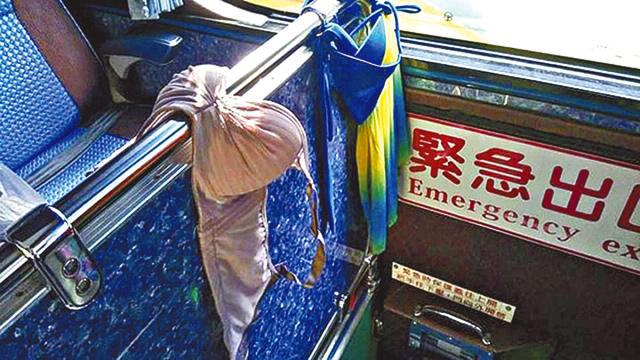 強國客的惡行,又多一宗!台灣一名負責接載大陸遊客的旅遊巴司機,發現陸客竟自備曬衣繩,把車廂變成曬衣場,將濕漉漉的胸圍、內褲在車上隨處掛。司機敢怒不敢言,只敢透過facebook宣洩不滿。