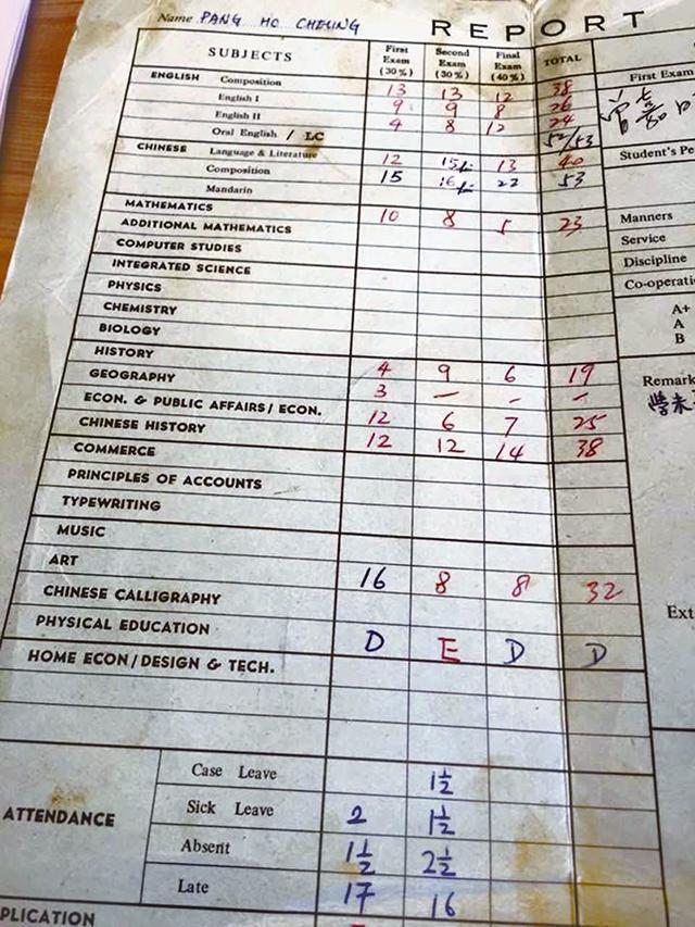 搬入新辦公室一年後,終於忍受不了這些擱在面前的紙箱,於是決定把它們重新拆開,整理一下。但所謂的整理,還只是想把幾個箱合而為一,然後再塞進櫃裏,直到下一次搬辦公室。過程中,竟然無意中發現了我中四時的成績表。我記得我由中一到中三是在太子道新法念書,直到中四才被派到北角的蘇浙公學。成績表封面已經開始發黃,但一打開還是震撼。已經忘記了當年所有科目竟然可以十之八九都不及格,這個成績表就似是預視我人生的故事大綱,就是所有事情都一塌糊塗,只是很會胡扯,所以只有口試及中文作文能夠及格。其餘我竟然連美術和體育這些不用溫習的科目我都可以考出這樣的成績。