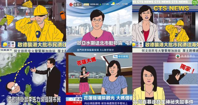 另一個由黃照達創作嘅錄像裝置《什麼新聞台》,就重提無綫記者潘蔚林喺颱風莫拉菲襲港期間做直播嘅經典場面,佢之後仲獲MJ潘之名。作者話,每日社會發生嘅事情被賦予嘅意義,完全取決於媒體嘅報道方式。當資訊過份應用影音化、圖像化、即時化、甚至透過動漫手法來傳達與描述時,人否可唔可以保有自主思考?