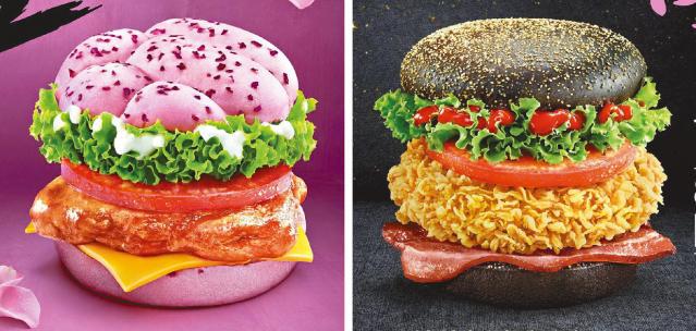強國乜都有!肯德基前日起在中國首次推出的兩款新產品,分別是用黑色麵包的「黑鑽培根(煙肉)辣雞腿堡」(右圖),以及用粉紅色麵包的「玫瑰芝士烤雞腿堡」(左圖),隨即引發內地網民激烈討論。有網民稱,這兩款漢堡的賣相很醜,而且還有點恐怖,「黑色那個好像用過的去黑頭的鼻膜紙」,「玫瑰堡上面那層跟用過的姨媽巾似的」,單看外表「這麼醜,我都下不了口了」。有食客更發現深層次的問題,是「為甚麼新品一個比一個難吃」。另有人說,「玫瑰芝士烤雞腿堡」味道就是新奧爾良烤雞腿堡和香辣雞腿堡的味道。新浪微博