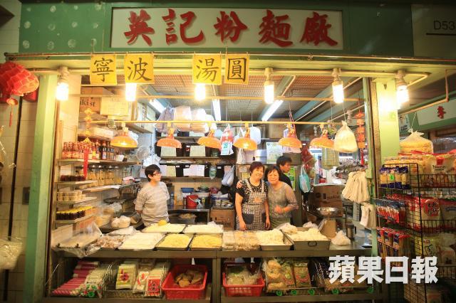 之後,吳師傅帶我們到地下的豬肉檔,店名叫「特好肉食」,是街市內最大型的豬肉檔之一,他經常在此購買豬肺煲湯。「這裏豬的甚麼部位都有,像豬頭肉、豬肚、豬腳等等,清洗得乾乾淨淨。」大埔街市有不少老字號,其中英記粉麵廠已有近半世紀歷史,在大埔墟自設工場,不少食肆的粉麵也是由它供應,雲吞水餃是其招牌貨。