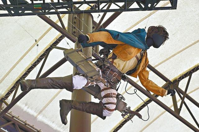 去年底至今年初,東京上野之森美術館曾舉行「進擊的巨人展」吸引25萬人次入場,而在《進擊》電影上映之際,作者諫山創的鄉下大分,今個月亦在大分縣立美術館舉行「進擊的巨人展 Wall Oita」,除會場內展出原畫、超大型模型外,連大分車站屋頂、附近建築物都有巨人頭及調查兵團模型吊在高處。