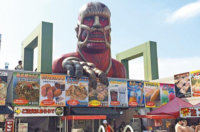 今年暑假的巨人熱潮更殺入水上樂園,位於大阪市浪速區的溫泉兼水上樂園Spa World,就於上月中至下月底舉行「進擊的Spa Pool」活動,場內設置有6米高巨人,在樂園內玩遊戲又大送巨人口罩等禮物,這活動更邀請身高190cm的柔道選手篠原信一任代言人,由他扮巨人搞笑。