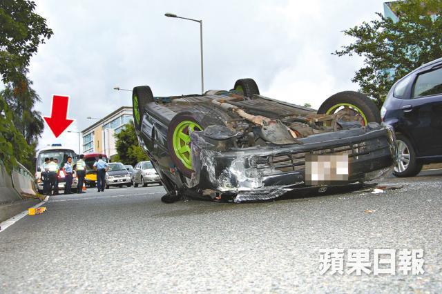 事發於昨早7時34分,22歲姓鄭司機駕駛思域私家車,由源禾路駛上沙田路,再沿慢線向大埔方向行駛,當駛至體藝中學對開時,私家車疑切入快線,司機連切兩線後,與快線上的警方小巴相撞。私家車撞及小巴泵把後,失控撞向路邊石壆,凌空彈起後反彈,四輪朝天橫亘路中,地上留有逾兩米長的煞車痕,車身一度冒出白煙,多塊玻璃碎裂,車內雜物散落一地,司機一度被困車廂內。小巴車頭損毀,車上各人均沒有受傷,多名衝鋒隊警員立即下車了解,並協助鄭離開車廂,攙扶他在路邊等待敷治,亦有人報案求助,及在場指揮交通等,鄭其後由救護車送院治理。