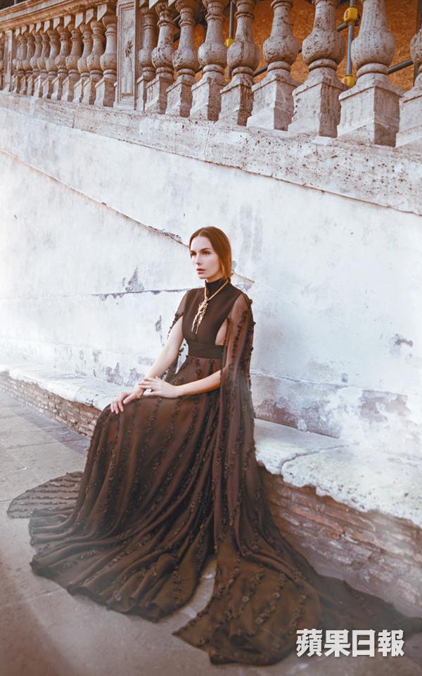 一裙一花園!取名為「皇后的花園」的黑色雪紡真絲裙,裙上細密鑲上柯根紗、皮革、羽毛造成的花,繁花似錦。