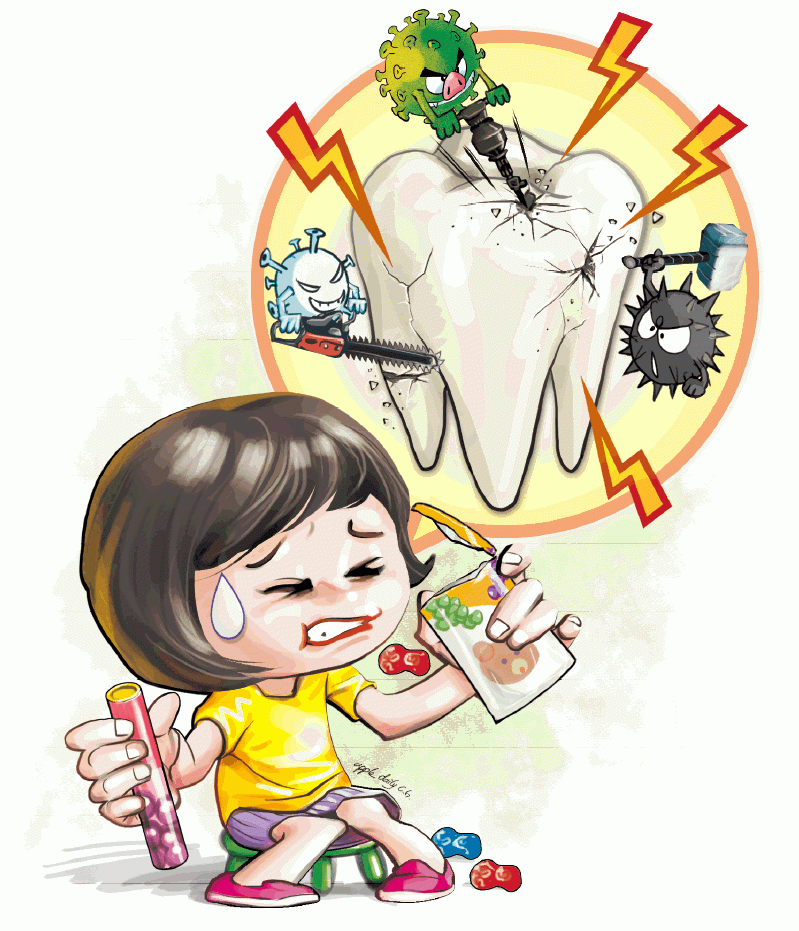 【本報訊】攝取過量糖份除會致肥外,更是導致蛀牙的元凶之一。牙科學者表示,糖份中尤其蔗糖,會令口腔細菌進行新陳代謝,產生酸性物質溶解牙齒表面礦物質,繼而形成牙洞變成蛀牙。患者除受牙痛困擾,若未有及時治理,或要進行根管治療,甚至需要脫牙。兒童及長者均為蛀牙高危人士,除早晚刷牙外,更應減少甜食及甜飲。