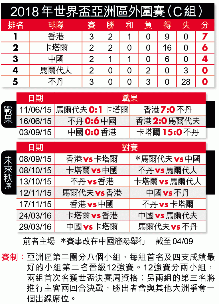 香港足球代表隊前晚在世界盃亞洲區外圍賽C組賽作客守和中國後,大軍昨晨離開深圳返港。落場不足五分鐘便告傷出的隊長陳偉豪,經檢驗後證實右膝韌帶受傷,要休戰兩個月,意味港足下周二迎戰來勢洶洶的卡塔爾時,將續以基藍馬頂替其中堅位置;這位入籍兵昨晨表示,前晚對中國的表現,相信可增加其稍後北上落班的「籌碼」。