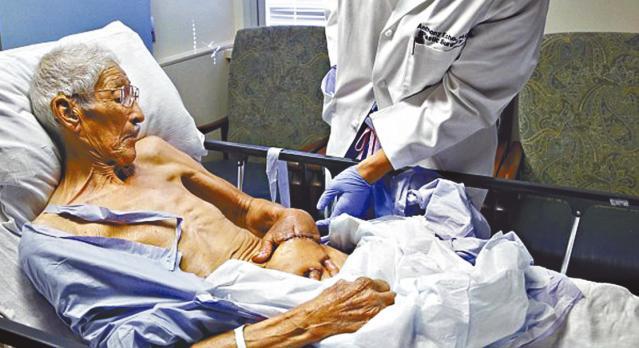87歲退休工人雷耶斯(Frank Reyes)今年6月在烈日下獨自換胎,左手意外夾在曬得發燙的擋泥板上,逾一句半鐘始獲救,結果手掌嚴重燒傷,皮膚幾乎壞死,一般植皮手術已失去作用,食指已嚴重感染至要截肢,整隻手掌也恐怕不保。