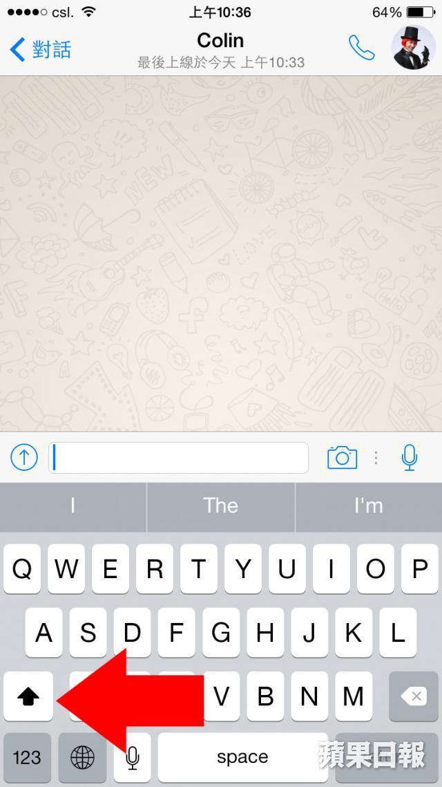 各位iPhone用家,有冇試過,在WhatsApp或facebook打字,想輸入大楷英文,每次都要逐個英文字按"Shift"鍵,非常麻煩。其實iOS內置的鍵盤無咁低B,有需要連續輸入大楷英文時,只要先打開英文鍵盤,連續雙擊Shift鍵,就可以鎖定成大楷英文的模式,這樣就可以快速連續輸入長篇的大楷英文。