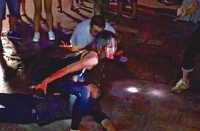 廣州出現女喪屍?上周五(4日),「廣州南田當街有食人女啃食路人」的短片在網上被廣傳,片中一女子滿臉鮮血(圖),頭髮凌亂,不時向路人吼叫,她腳邊還有一個疑遭撕咬的男子倒在地上。圍觀路人紛紛拿出手機拍照,卻不敢上前阻止,場面有如美劇《Walking Dead》。