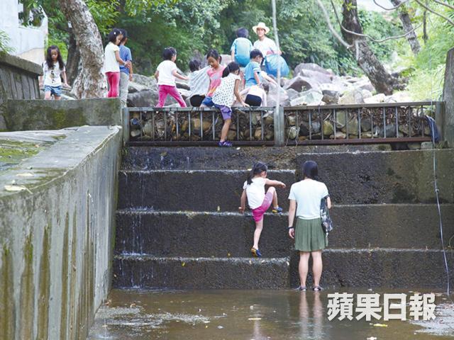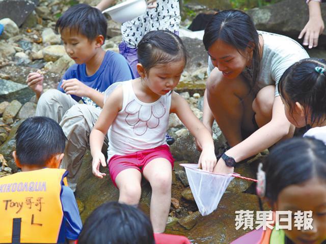 平日被功課及學術班纏繞,困在安全網內太久的孩子,這天難得脫離父母,就像解除了束縛,急不及待飛奔到水裏大玩特玩,在又濕又滑的溪澗前進,完全沒有流露出一絲畏懼,不消一會已玩得全身濕透,又瞓身潛入水中,捉魚捉蝦,玩甚麼做甚麼,只要安全,Tony會任由他們發揮,不加阻撓。在溪澗玩得興起,Tony牽頭帶領孩子哼起自己創作的《小溪的故事》,在溪旁樹林看見被砍伐的土沉香,又唱起《土沉香之歌》,沿路看見牛屎野菇,孩子都特別興奮,紛紛駐足「欣賞」,也難怪,畢竟他們都是住在城市的小孩,日常很難接觸這些新奇東西。