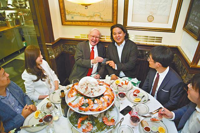 不過圖片顯示,如此天價午餐地方是靠近廚房非常侷促小房,環境之擠迫難以置信;餐桌也很小,小到對面坐隔台伸手可及。用餐者除畢菲特和朱曄外,還有一女七男,全是朱的手下,女為朱的演員妻子尚玟熹(尚華)。此桌天價午餐上的菜式有龍蝦、蟹、蝦、牛排,以及紅酒、餐後甜點等。