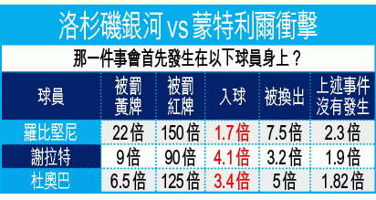 周六有場星光熠熠的美職聯比賽,有謝拉特、羅比堅尼(前)壓陣的洛杉磯銀河會在主場,迎戰由杜奧巴領軍的蒙特利爾衝擊。銀河近五場比賽有四場入五球,加上兩隊都有中堅主將停賽,所以今仗必捧入球「大」。(球賽編號:星期六99;無綫網絡電視302台明日10:30am直播)