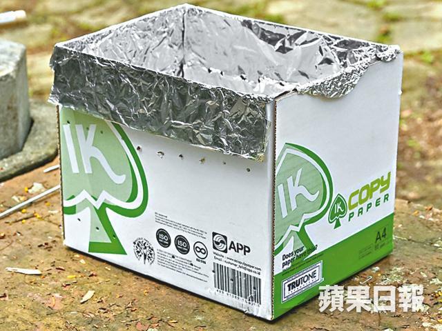 將A4紙箱內櫳以錫紙包好,箱蓋亦然。