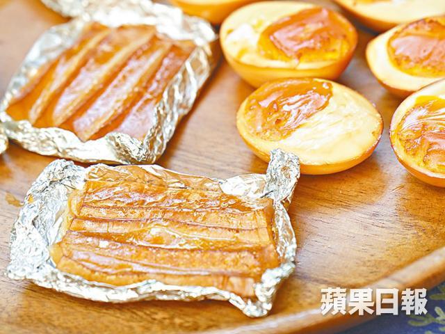 雞蛋烚至半熟成溏心,去殼;三文魚切塊;芝士切片置於錫紙兜中。