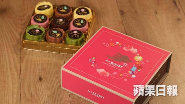 A1 Bakery x 梳乎蛋「金紗月菓」共三款口味,其中最特別的是雪糕爆炸月餅,軟滑的朱古力雪糕混入爆炸糖粒,口味過癮。($138/盒)