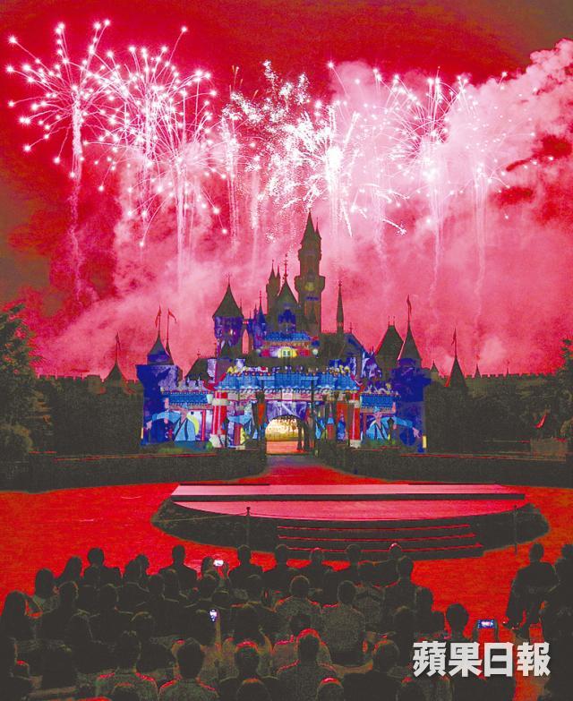 香港迪士尼樂園今日滿10周年,昨舉行慶祝晚會,並將11月才正式推出、加入城堡投影效果的「星夢奇緣」煙花表演(圖),提早在昨今兩晚讓遊客欣賞。但不少遊客認為10周年紀念氣氛不濃厚,也有擁躉坦言失望。