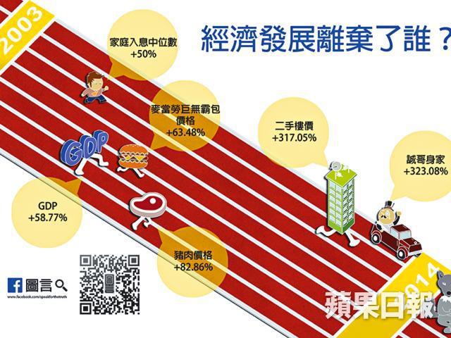 年初推出好比秋日賞楓圖的《捕捉野生年輕選民圖》,18區已登記的年輕選民分佈無所遁形,灣仔、中西區跟油尖旺的年輕選民登記比率,居然大幅落後新界東北。元朗區未登記年輕選民人數,卻是灣仔區的五倍。常道佔領「冇用」,一張選票對政府的影響力大得多,煩請大家醒醒定定。最近10年,若不是自由行來購物,帶來大量商機,香港早已陸沉。他們製作了《經濟發展離棄了誰》,由政府網站如政府統計處、差餉物業估價署、立法會、福布斯網站及全球最大數據資源網站numbeo.com等收集數據,整理出10年來的香港家庭入息中位數,增加了百分之五十的數據,但對比樓價及誠哥身家的升幅更是車尾燈都看不到,更跑輸巨無霸漢堡,到底甚麼人受惠於大陸自由行呢?