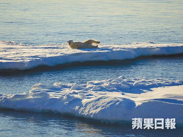 趕快跑落餐廳露台,不得了,五米距離清楚看到寬大的熊掌在清澈海水中抓呀抓呀,頭細耳小頸長長,白毛軟滑如絲,用一對無知黑眼睛和我們對望,融化郵輪上下的人心,來來回回15分鐘,終於累了,一掌爬上附近浮冰,頭仔左搖右擺,立時水花四濺,然後把身體和頭顱栽入白雪,翻身滾地好幾趟,如小孩般滿臉雪粒,故意定格望向鏡頭,像要確保每人也拍到大特寫,便心滿意足地躺着休息。