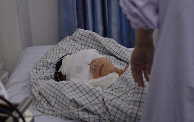 小碩被送院後,進行兩次手術,麻醉藥過後全身痛得厲害,前日凌晨痛得哭出聲。媽媽汪玉英輕撫兒子默默垂淚。小碩又向母親問:「為甚麼都是黑天呢?眼睛上的紗布啥時候能拆下來啊?」