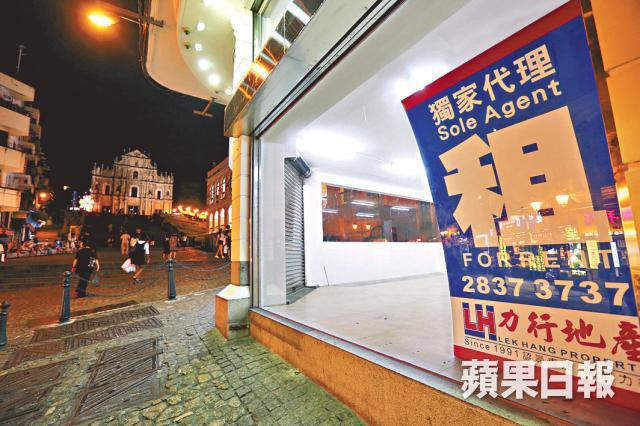 澳門今年首8個月入境旅客數目約2,043.8萬,按年跌3%。記者上月到皇朝區實地視察,賭業好景時遍佈四周的藥房金舖、當舖、刷卡店已不復昔日光景,吉舖處處。美聯李楚健稱,皇朝區當旺時面積1,000方呎的店舖月租近40萬元(澳門元.下同),呎租約40元,如今呎租回落兩成至約30元。