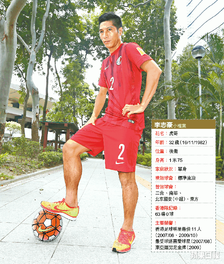 「虎哥」會考只得兩分,校長讓他重讀,他卻把心一橫向球壇發展,一踢已近20年,當中效力南華12個球季。球迷也許還記得,他在2009年亞盃外作客日本敗陣後批評教練金判坤排4-4-2陣式不當,亦記得他曾高調退出港足。和昔日的一點一滴相比,令李志豪留下最深印象,始終是最近的港足熱潮:「我在18歲入選港足,以前比賽沒人入場,球場很冷清,近期場場爆滿的場面,是前所未有。」