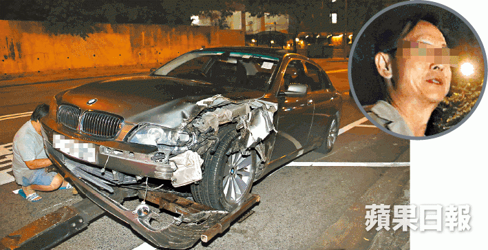約半小時後,一名男子到達現場,向記者自稱是寶馬司機,並指事發時因傷風曾服藥,意外後覺得頭暈一度離開,被問及被撞斷的樹幹上有一罐啤酒時,男子否認是其所有,更稱:「邊有咁大膽,飲咗酒肯定唔敢(駕駛)。」接着他離開聯絡警方。警方稱,涉案的49歲姓韋司機未能通過酒精呼氣測試,涉嫌酒後駕駛被捕,他已獲准保釋,下月返署報到。運輸署資料顯示,肇事寶馬為一間租車公司登記,06年以110多萬元買入。