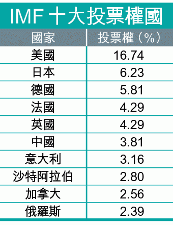 值得留意嘅係,習近平今次訪英屬單獨行程,唔同以往同時出訪多個國家,意思係專程拜訪;英國亦響103下禮炮迎接,有別於一般國家響21下禮炮歡迎國家元首嘅慣例,雙方都以高規格隆重其事。其中關鍵恐怕就係人民幣11月能否加入SDR一事。SDR納入人民幣要IMF 70%成員國支持,美國同日本兩國已佔22.97%投票權,而英國佔4.29%(詳見表)。此三大盟友國如果都反對SDR納入人民幣,11月嘅審議人民幣就凍過水,所以習近平今次喺SDR投票前落區拉票。你冇睇錯,國際事務上,中國係要跟民主投票規則。