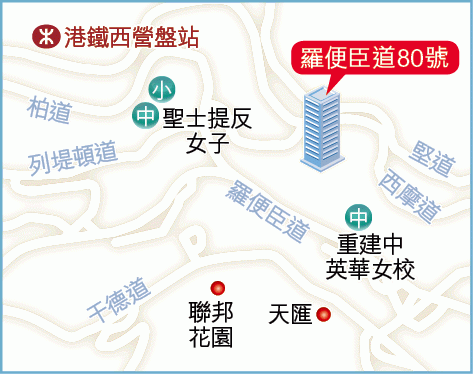 區內名校林立,鄰近有聖士提反女子中學附屬小學、嘉諾撒聖心學校等,而羅便臣道80號旁邊的英華女校現正重建中,預期2018年落成。