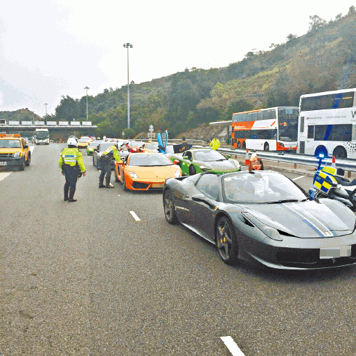 昨晨6時至9時,新界南總區交通部執行及管制組特遣隊高級督察徐永麟率隊,在青衣、葵涌及大嶼山多處打擊非法賽車,截查多輛高性能跑車及非法改裝辣車,其中在青嶼幹線收費亭對開截查逾10部超級跑車,包括林寶堅尼GALLARDO、法拉利458 SPIDER及新款麥拿倫650S等。行動中共有5輛車涉超速,其中一部車的行車證過期,警方發出6張告票。此外,4部懷疑非法改裝辣車被拖走檢驗。