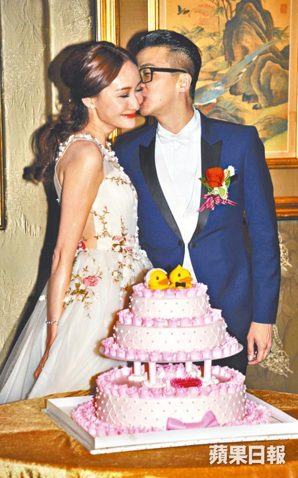 曾與張栢芝胞弟張豪龍拍拖的34歲模特兒何紫綸(Ann),昨與拍拖2年的飲食業男友Gary Lam在港島香格里拉舉行婚禮,筵開32席,並請來前女子組合Freeze成員陳樂榣擔任姊妹團。新娘子Ann昨穿上deep V露背婚紗、戴上3卡鑽戒跟老公切蛋糕及合巹交杯,記者要求二人錫錫,但怕醜的新郎哥僅願意錫老婆面珠。