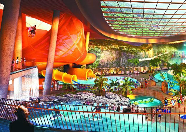 昔日的五彩天梯則會升級至8條極速滑梯。黃志強透露,若要更刺激,要數近乎垂直的18米高巨型滑水梯,相當於6層樓高,只需4秒便由戶外極速滑至室內。新樂園設計由河流貫穿,包括設於室內的悠閒河流及戶外的瘋狂河流,前者可乘坐大型水泡慢慢享受,後者則添置水槍、水桶等,沿途向遊人「施襲」。