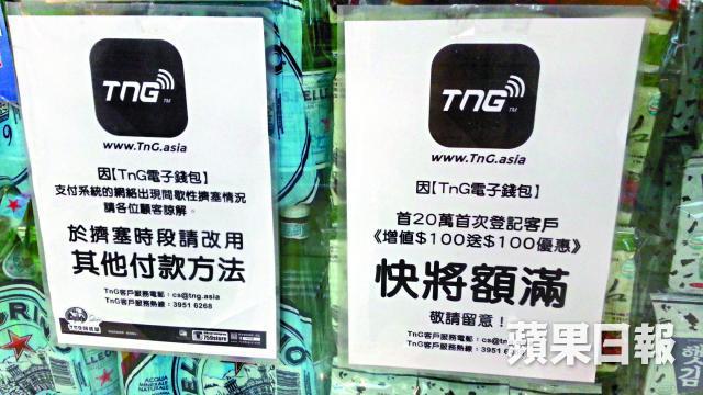 【本報訊】連鎖零食店759阿信屋與電子錢包平台TNG合作,本周三(4日)起推出首20萬名新登記客戶「增值100元送100元」優惠,但連日來系統網絡大擠塞,不少顧客昨更一度無法上網登記領取優惠,亦未能使用電子錢包付款,大感不便。TNG解釋指登記人數過多致網絡擠塞,至昨晚新登記名額爆滿,優惠正式結束。