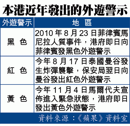 梁振英昨晨10時半發聲明譴責巴黎恐襲,並指目前香港受恐襲風險維持中度。但保安局延至傍晚近6時才宣佈對法國發出黃色外遊警示,呼籲港人如非必要,應避免赴巴黎。