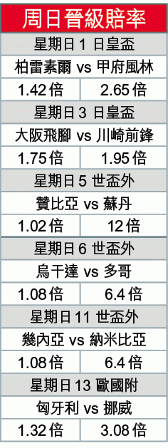 挪威首回合於主場不敵匈牙利,如想出線明夏法國歐國盃決賽周,周日作客布達佩斯進行歐國外附加賽次回合就非勝不可。挪威在背水一戰下定傾力搶攻,加上整實體力始終較強,信他們可收復首回合的失地,「讓球」開平手值捧。(球賽編號:星期日13;有線61及201台明日3:45am直播)