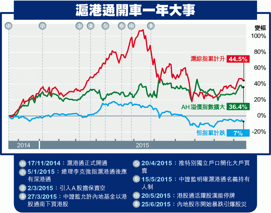 滬港通去年11月17日通車後,明日即滿一周歲,但一直低迷的參與度,自股災後更見冷淡,餘額不跌反升。歸納中港兩地投資者意見,熱情不如預期可歸咎於技術限制未解決、兩地炒風大不同及股災令資金窒步三致命傷。