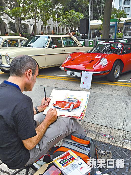 噚日老爺車展,有一道特別風景,就係唔少人擔櫈仔坐喺車前面,為老爺車寫生。見佢哋拎住簡單工具,一本簿,幾支筆,再加個調色盤,輕易就將一部老爺車畫得活靈活現。好似呢位仁兄所畫嘅1973年Ferrari Dino 246 GTS幾靚,唔可以擁有部車,畫佢出來留念都幾好吖。