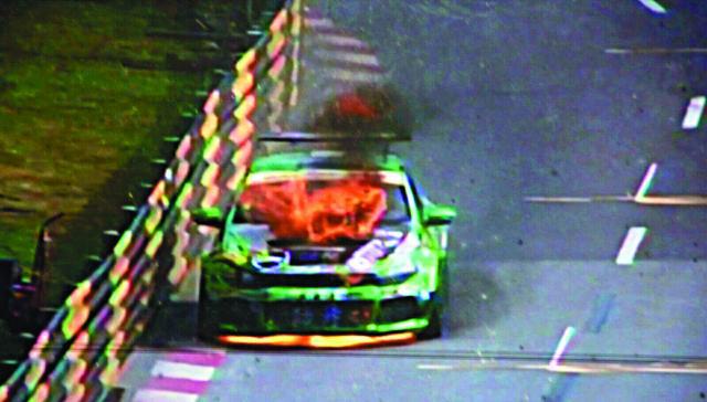 澳門昨天天氣悶熱,在路車挑戰賽練習賽亦發生戰車自焚一幕。中國車手鄺燦雄駕駛的79號車,在賽事期間突然底盤起火,火勢瞬即蔓延,數分鐘後才熄滅,慶幸鄺及時逃出車廂,未有受傷。有執勤的消防員直言,往年大賽車場內車模在鏡頭後都要多披衣服禦寒,如今卻截然不同,這位土生土長澳門人更指天氣明顯反常。