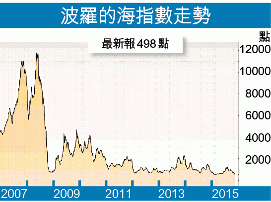 反映乾散貨運費的波羅的海指數連跌21日,上周五跌穿500點,創指數自1984年設立以來的30年歷史新低。散裝船主要運載鐵礦砂、水泥、煤炭及穀物等原物料,指數除反映航運費用外,亦是全球經濟的領先指標。觀察各型船舶現貨運價,目前大幅跌穿成本價之下,如海岬型船舶現貨運價最新日租金5,280美元,較去年同期2.35萬美元,跌幅達77%。