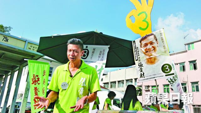 【本報訊】主打土地議題、綠色社區的城鄉共生連線3名成員,昨出戰區議會,挑戰傳統鄉事派、建制派對手,冀奪取議席。曾於上屆區選落敗的土地正義聯盟成員朱凱迪,今年捲土重來參與元朗八鄉南選舉,並出動單車助選團、狗狗打氣團拉票。面對另一強敵、鄉事派對手兼原居民黎偉雄,他坦言無論勝敗,都會致力推動鄉郊發展及農地保育,維護綠色八鄉。