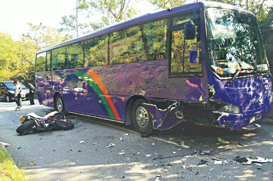 【本報訊】大埔新娘潭路昨日發生7年來第9宗致命車禍、奪去第10條人命。一輛電單車高速失控「波out」,偏離行車線迎頭猛撼旅遊巴,新婚鐵騎士飛彈20米墮地重創,尾隨兩車閃避時亦相繼翻車;救護員將3名傷者送院,頭車鐵騎士經搶救終告不治。
