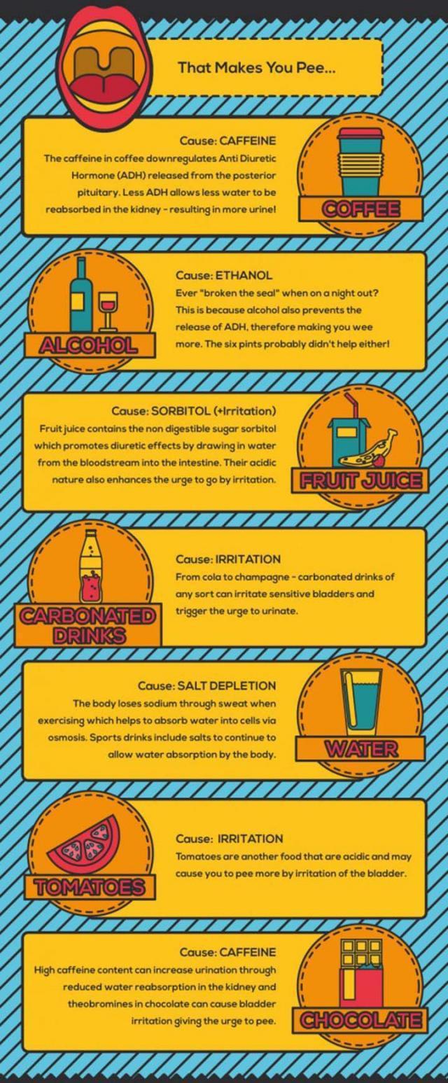 【酒精】出嚟飲嘢,時不時跑廁所,因為酒精中的乙醇同樣亦會減少製造「抗利尿激素」。(記住記住記住要喝八杯水啊!)