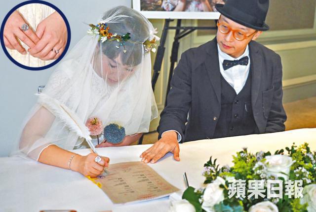 昨日簽紙儀式在中午12時半舉行,儀式如Ivana所說非常簡單,新郎新娘甚至連傳統婚紗禮服亦沒有穿,Ivana穿上一襲鬆身cutting加低腰設計的蕾絲短袖裙襯珍珠鏈,行禮時披頭紗,與賓客合照戴上可愛小皇冠,新郎則煲呔配西裝褸牛仔褲,完全非主流style。
