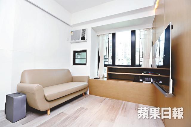兩間房麻雀雖小,卻迎合住者所想所要,主人房貯存大量雜物,造兩級地台,比起單層地台容量多一倍,仍嫌不足夠,床尾及床邊還有衣櫃,連同房門上方的走廊天花櫃,簡直用之不盡。床褥貼近窗台擺放,窗台有柱躉及橫樑非常礙眼,分別加長床頭板及造斜形木殼遮醜,易容變靚。