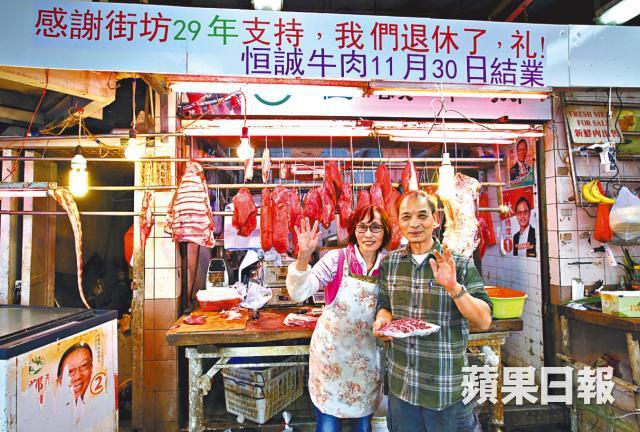 其檔位頂端貼了幾個大字,答謝街坊支持,同時宣佈結業消息,來買肉的街坊望望告示,不捨之情表露無遺。家務助理曾太光顧20多年,指黎太臉上總掛着親切笑容,而且有求必應,「有時我買少少(肉)佢都肯畀我,唔係檔檔都肯㗎嘛!」