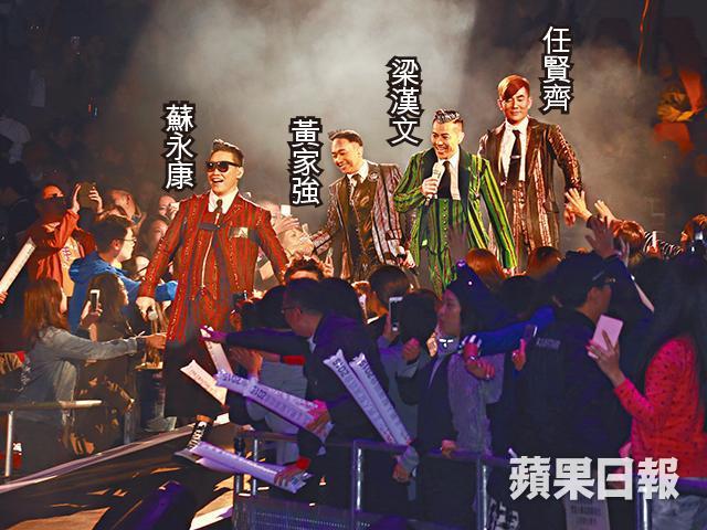 一連三場的「男人幫演唱會2015」前晚在紅館開鑼,任賢齊、蘇永康、梁漢文(Edmond)和黃家強在台上賣力獻唱,四個男人的太太均有到場支持。