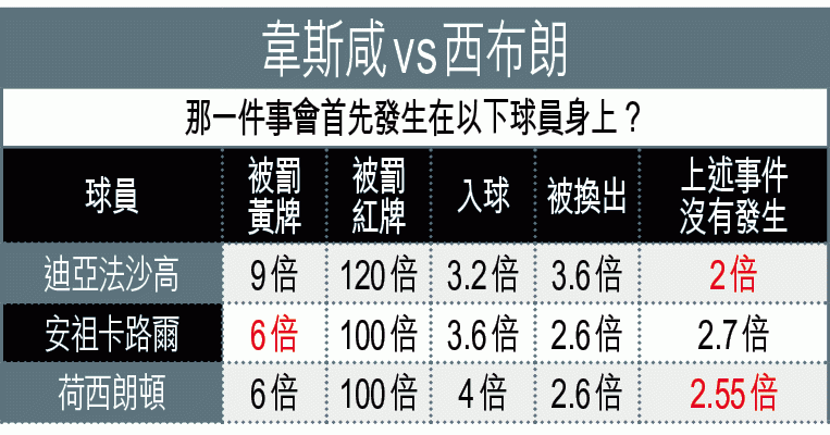 同日另一支倫敦球隊韋斯咸則主場出擊對西布朗(球賽編號:星期日21;now621台今日10:05pm直播);韋斯咸近況遠遜季初,近三仗只得一分,傷停問題影響甚大,中場皮耶及前鋒安拿華倫西亞仍因傷缺陣,並有麥克盧保及占士哥連斯停賽,從西布朗上仗擊敗阿仙奴所見,球隊的防守力不錯,受讓平/半可博下盤。