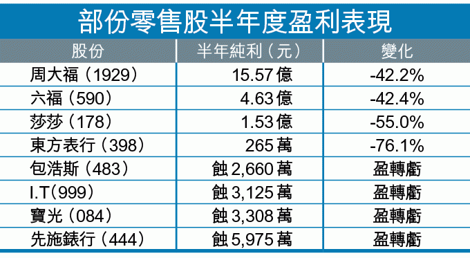 過去一個月,多間零售商公佈最新半年度業績,珠寶商周大福(1929)、六福(590)盈利減少超過四成,化妝品商莎莎(178)更少賺55%,錶行甚至蝕錢收場。這代表甚麼,就是內地客的消費模式不單止改變了,由高端走向低端,甚至乎連低端消費群也出現結構性改變,平均每客消費力劇減。